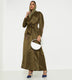 عباية أنيقة من القماش ندى، تصميم منفوخ ومطويات مزيج من الخام والأناقة والموضة