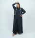 عباية كحلية داكنة مزينة بالدانتيل الأنيق - عباية محتشمة وأنيقة قطعة أنيقة من الكحلي الأنيقة بتطريزات دانتيل