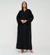عباية سوداء مفتوحة أنيقة مع تطريز يدوي وأكمام واسعة تتميز بتصميم عصري عرض تقديمي كبير الحجم مع تطريز يدوي وأكمام واسعة تقدم تصميمًا أنيقًا