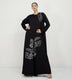 عباية بتصميم خطوط بنية وأحجار سوداء مطرزة انطلقي نحو الفخامة للجولف مع عباية براون لاين، رسميًا للمسيحية التقليدية التي تعشق التراث التاريخي بكل تفاصيلها. هذه الام العروسة المفتوحة لها وتطريزها بالاحجار السوداء