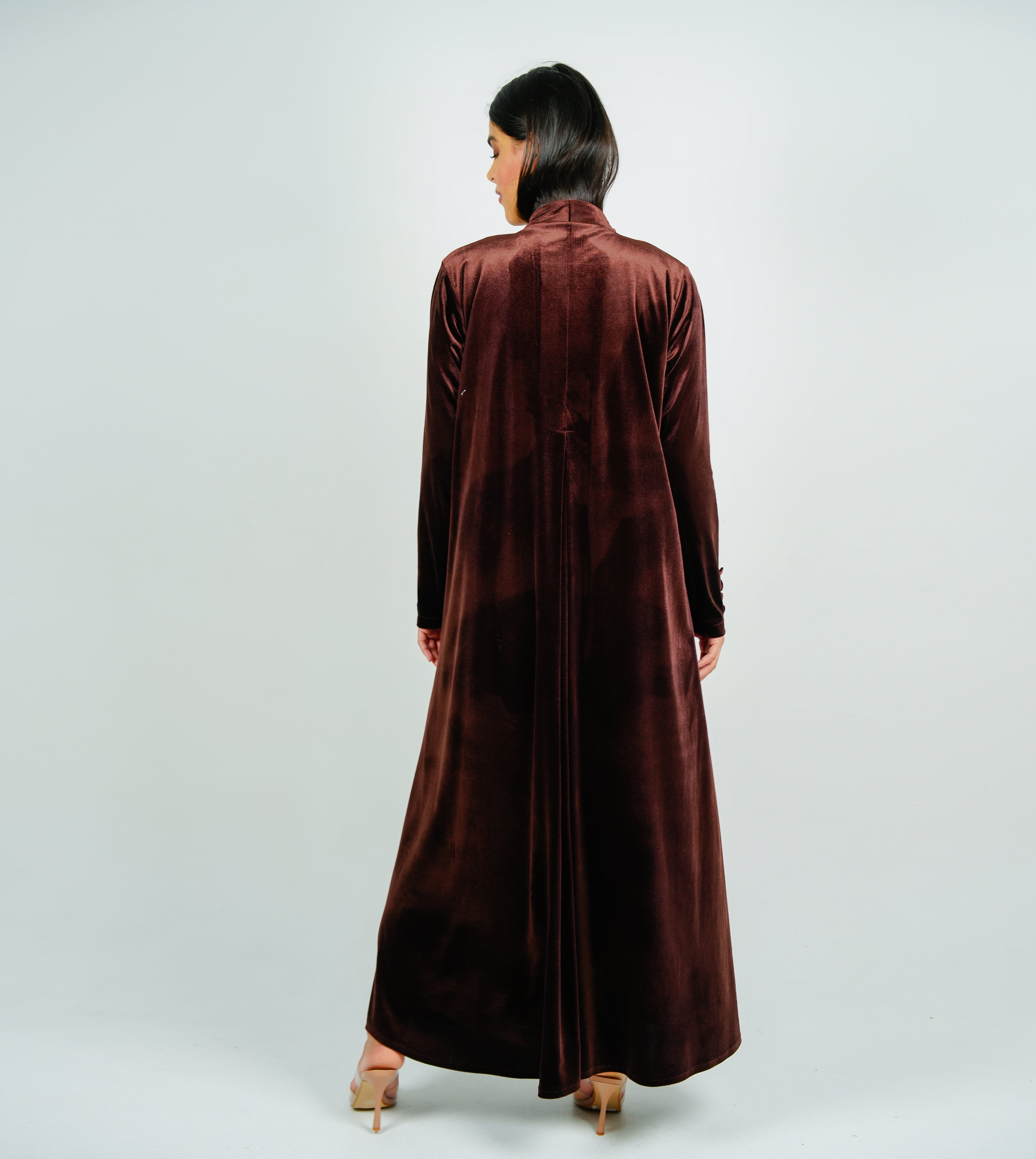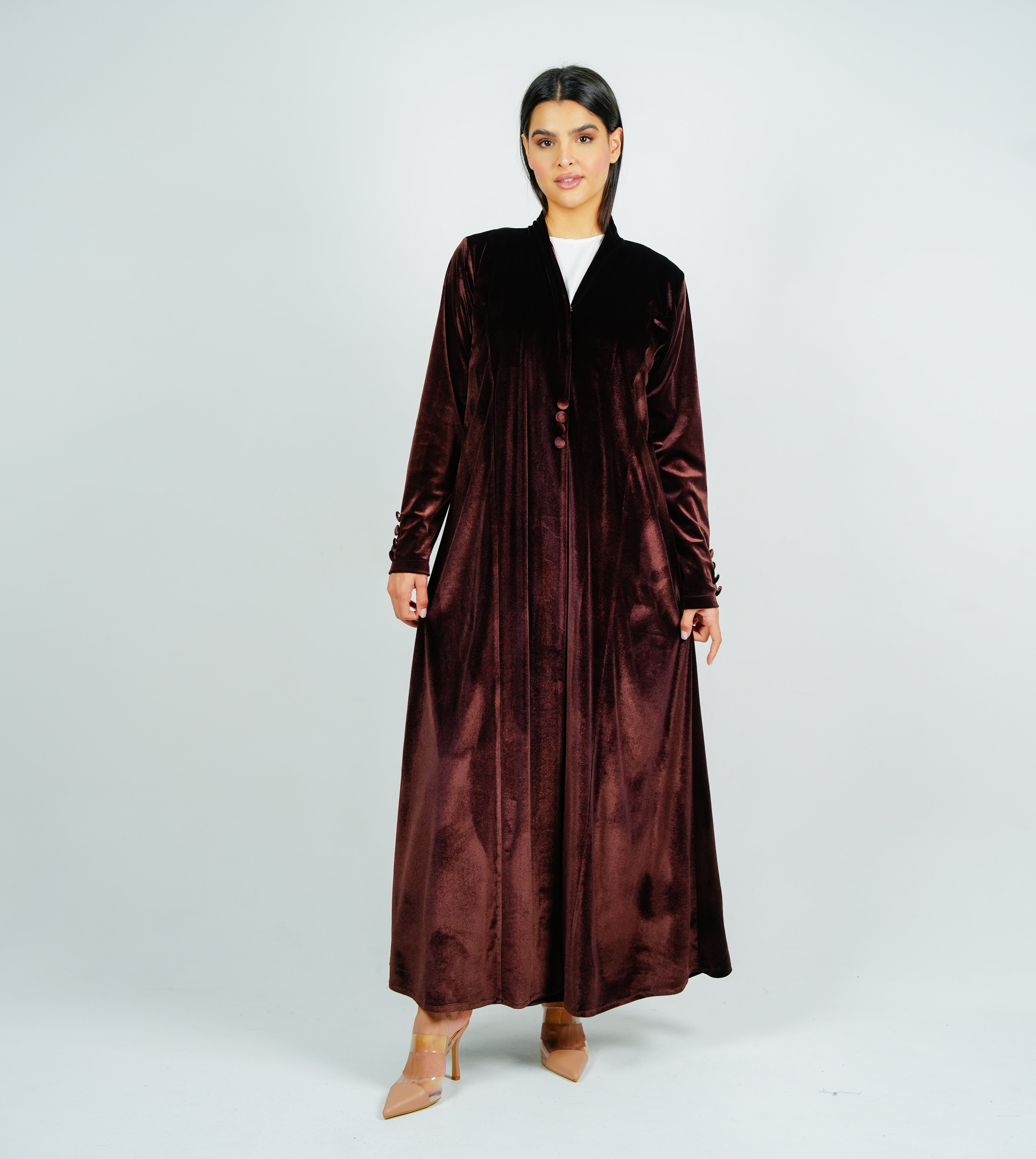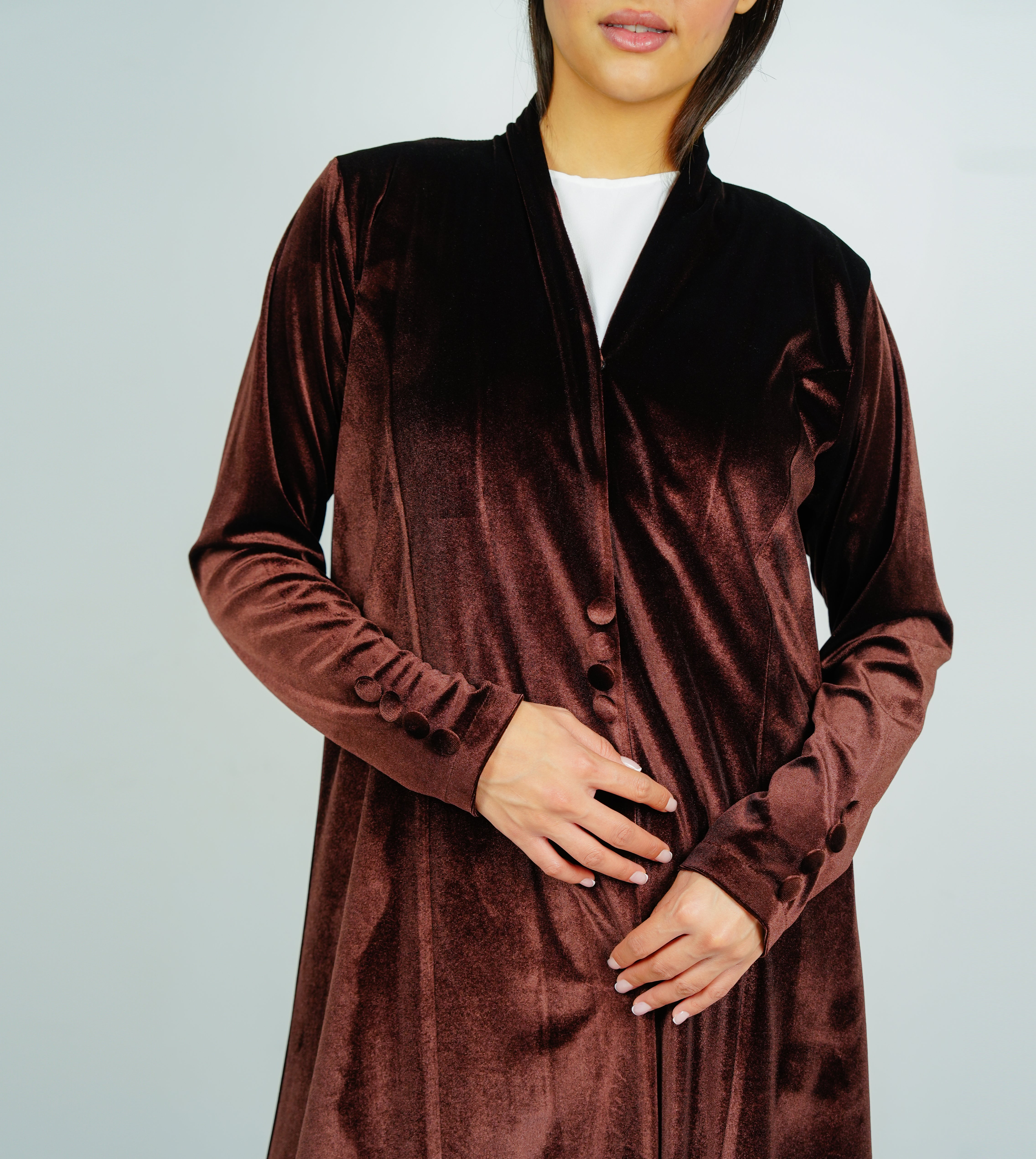 Button velvet abaya Style with Cut Design عباية مخملية بأزرار بتصميم أنيق وقصة مميزة