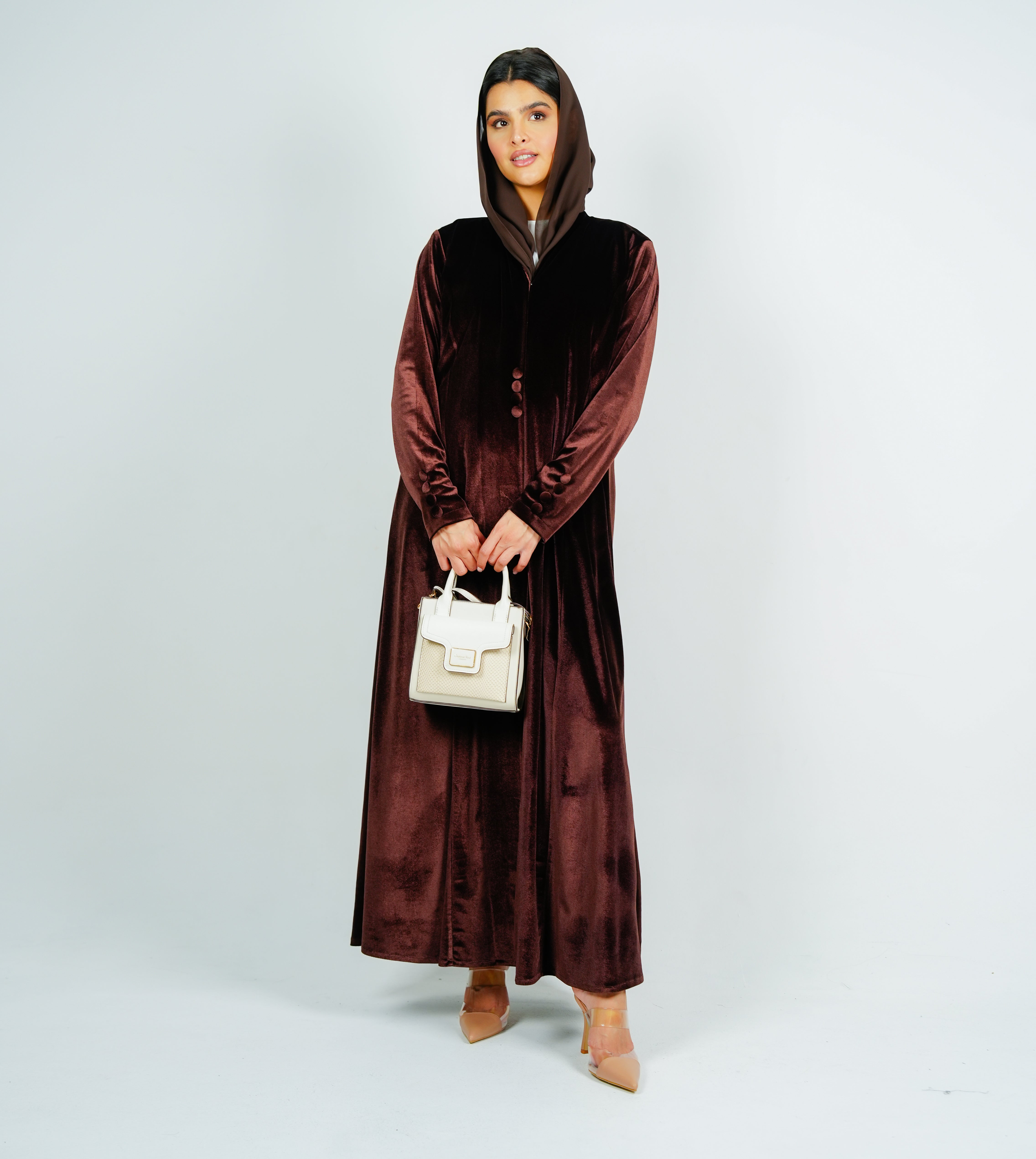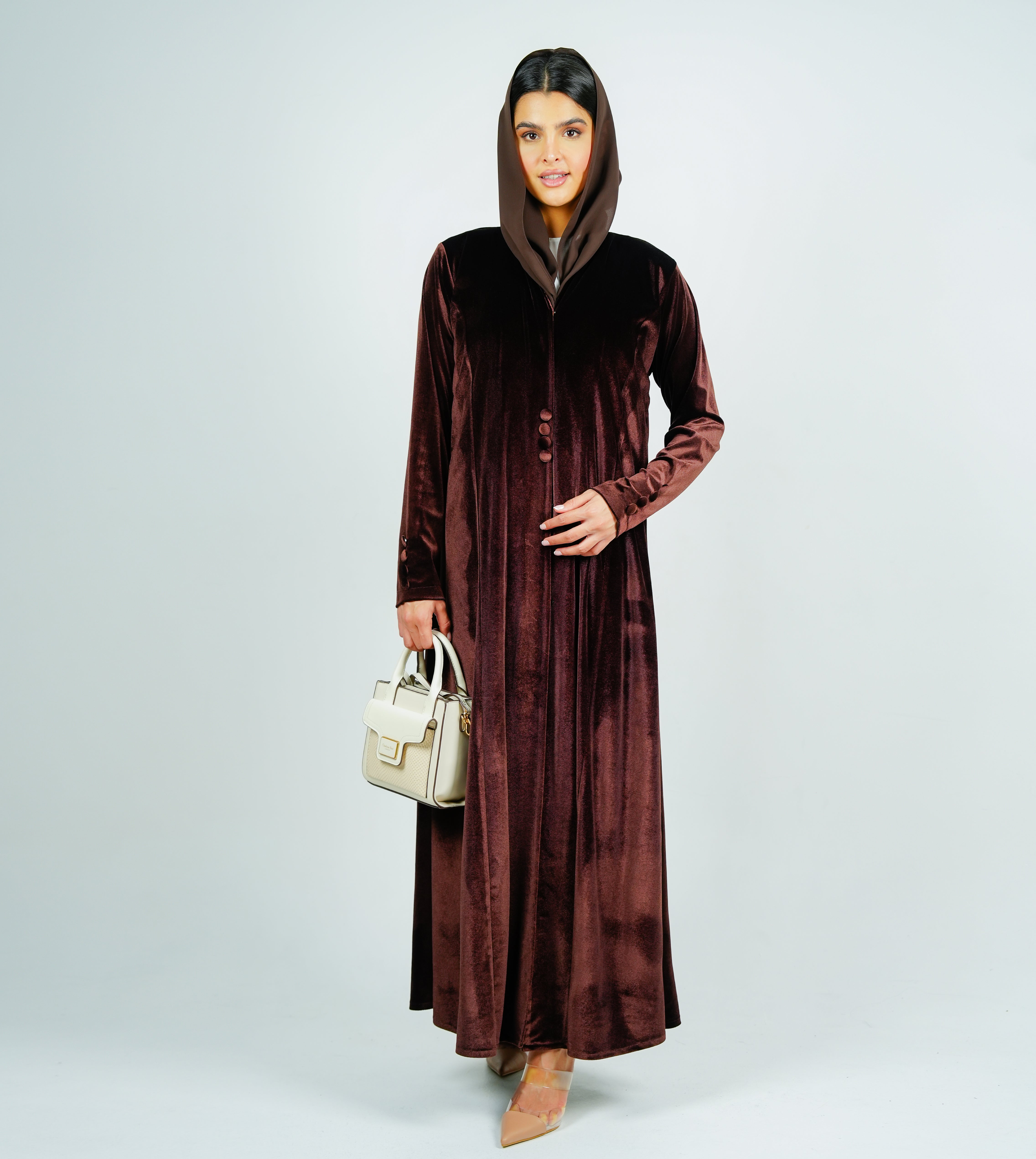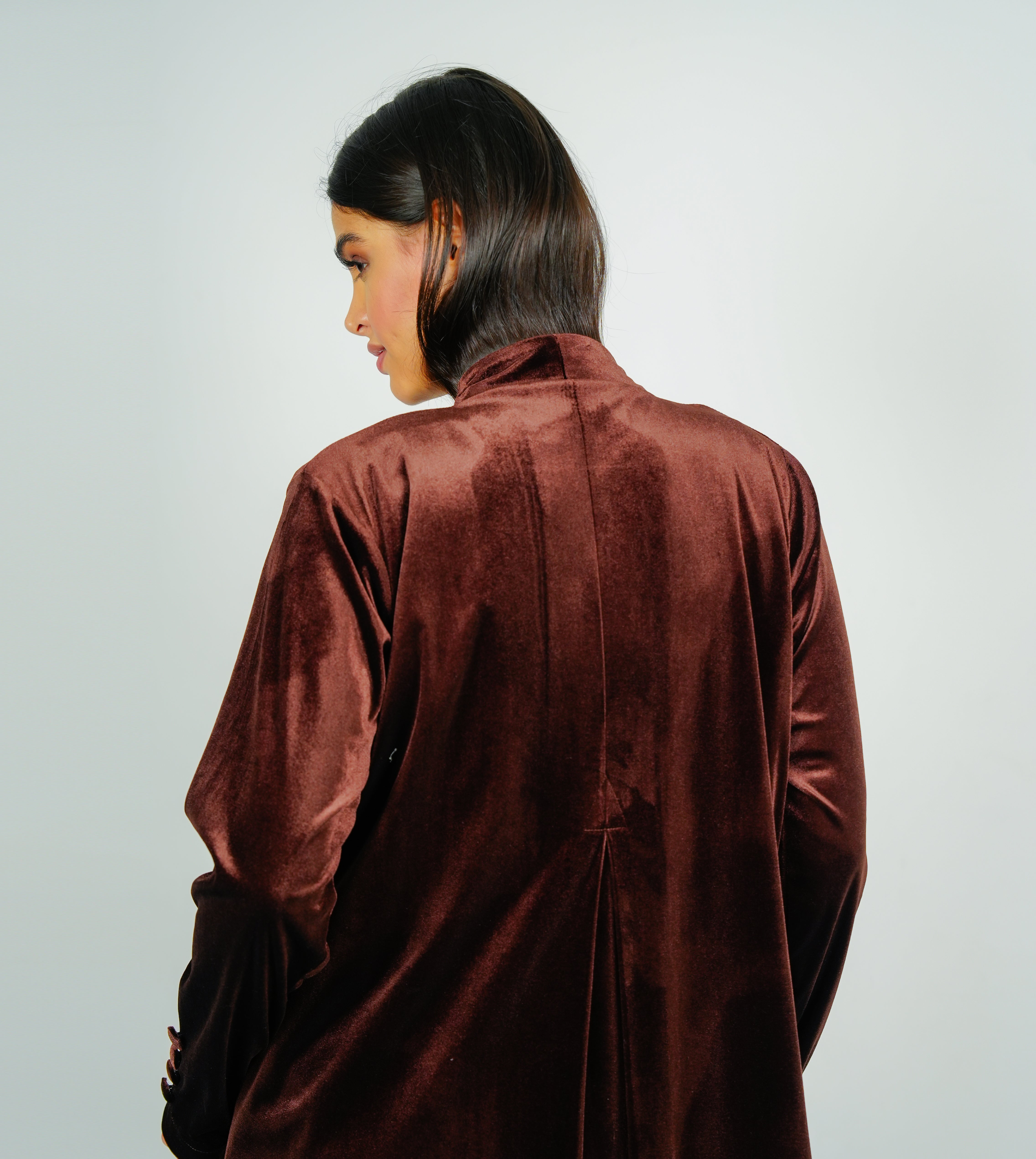 Button velvet abaya Style with Cut Design عباية مخملية بأزرار بتصميم أنيق وقصة مميزة