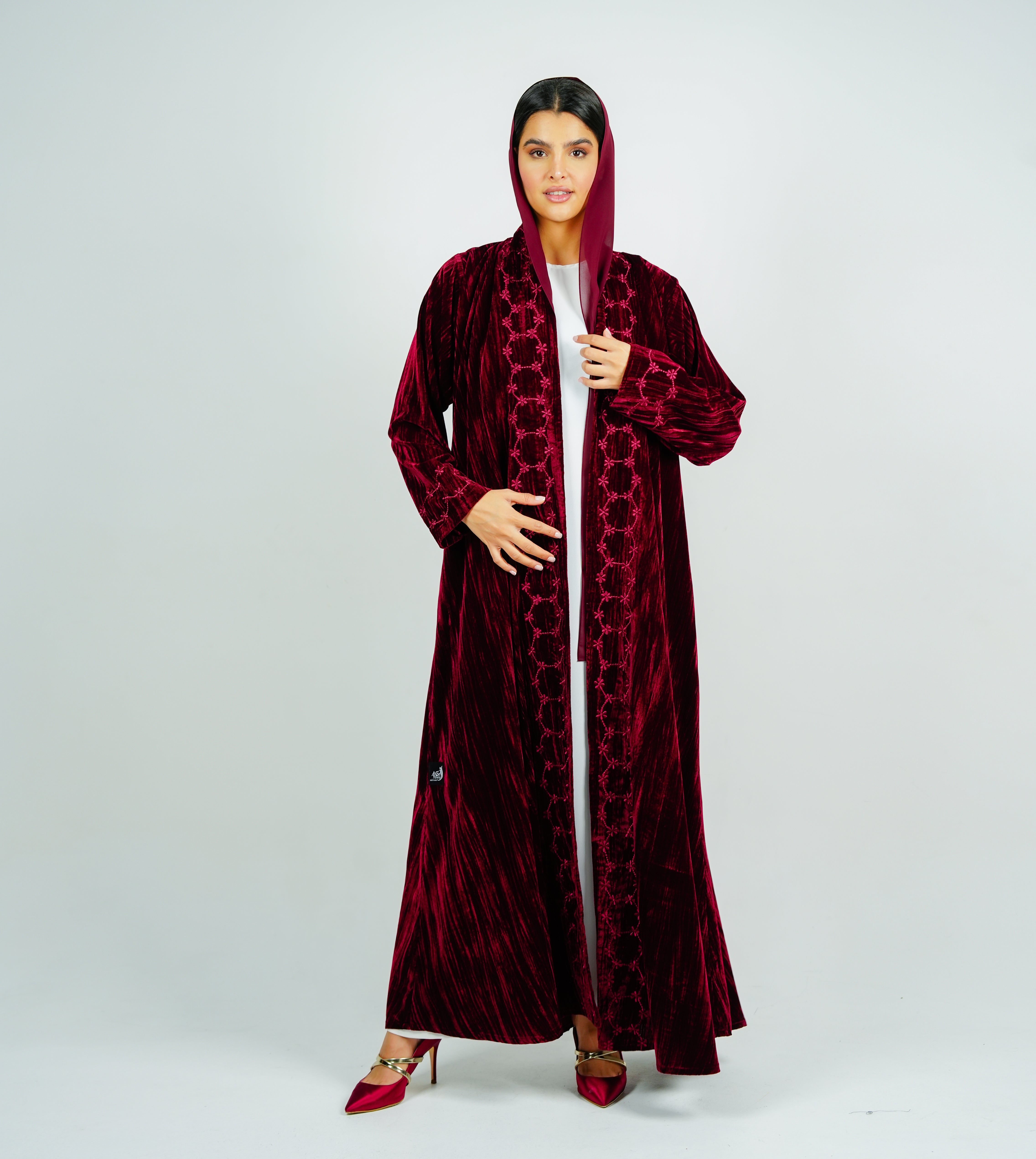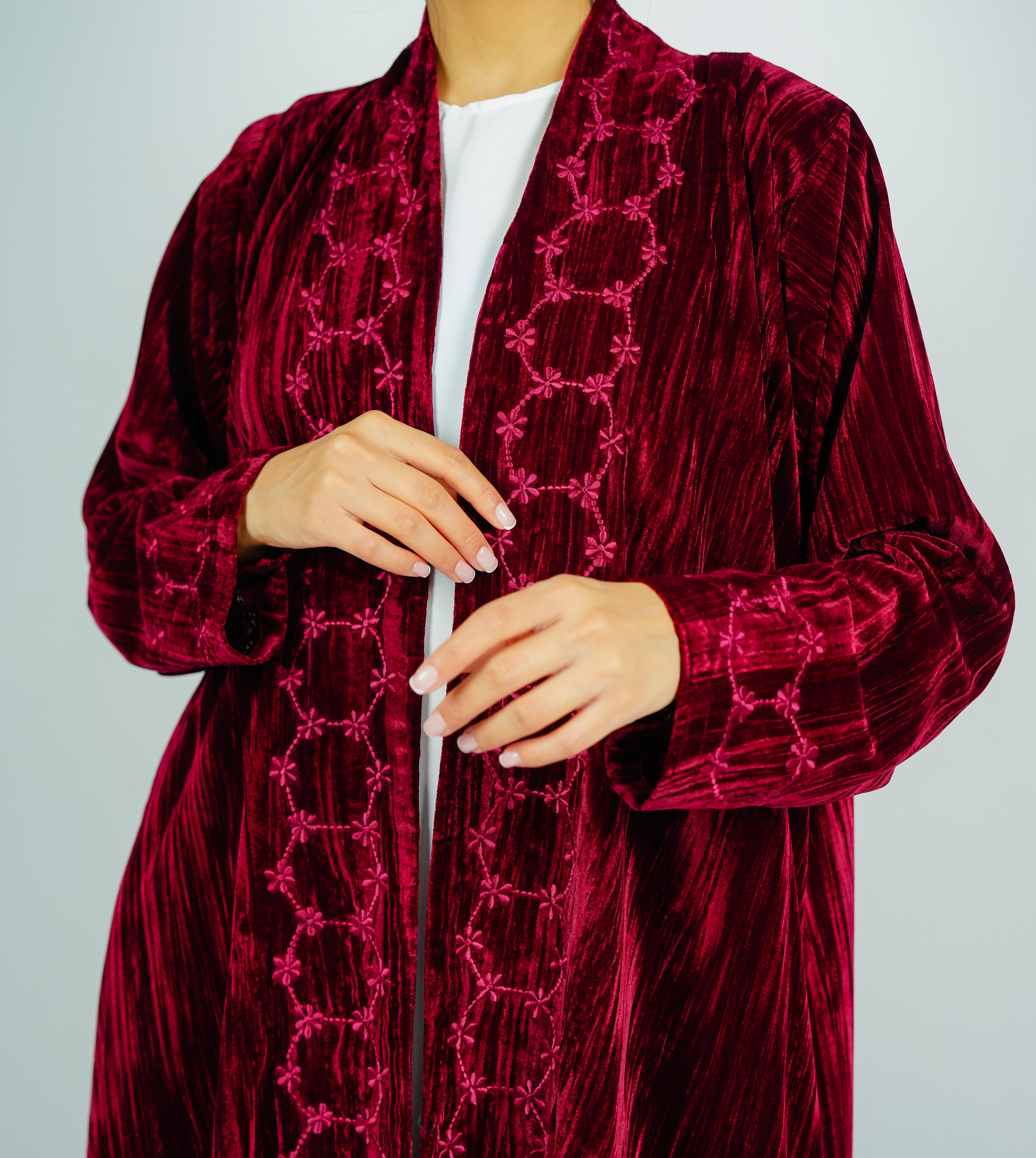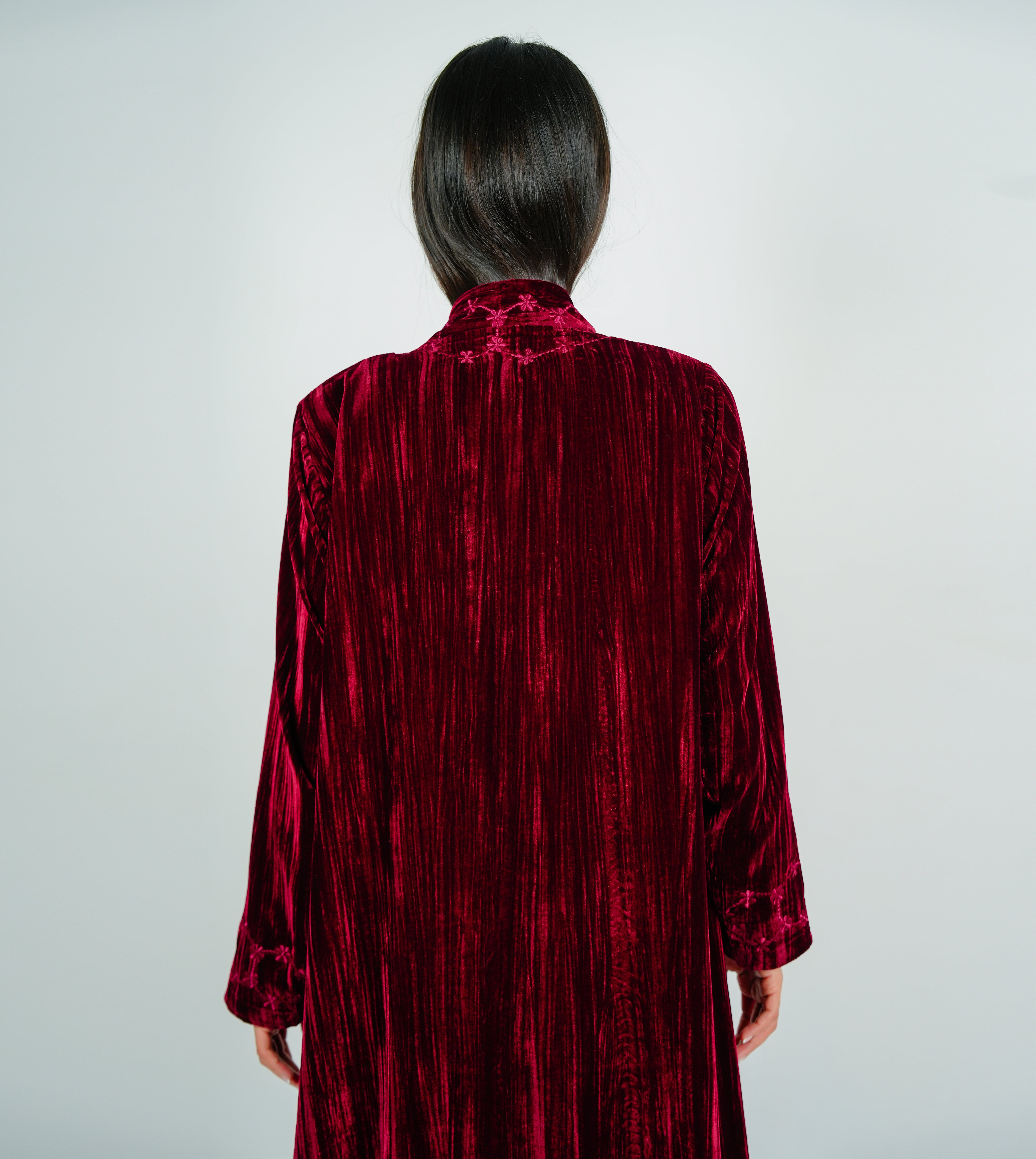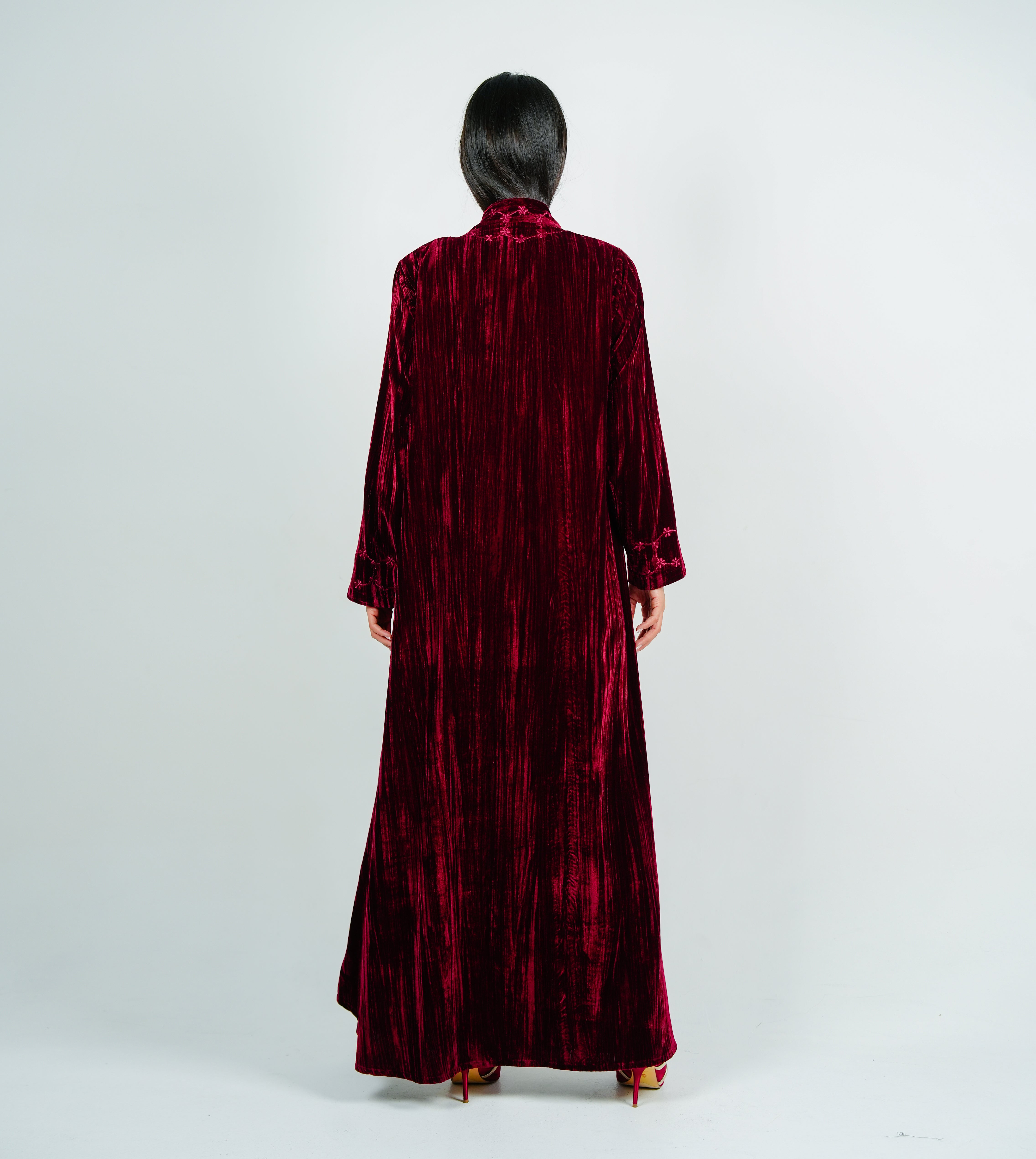 Luxury Velvet Abaya with Flowing flower Embroidery عباية مخملية فاخرة بتطريز زهور انسيابي