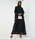 Abaya with Brown Side Dantil and Embroidery اكتشفي أناقة عباية فاخرة السوداء المفتوحة مع أجزاء دانتيل جانبية، وتطريز أسود متقن، وأكمام أنيقة. تسوقي الآن لدى متجر روزيت للعبايات
