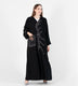 Elegant Black Abaya with Button Style and Pleated Sleeves عباية سوداء أنيقة بأزرار وأكمام دانتيل مطوية