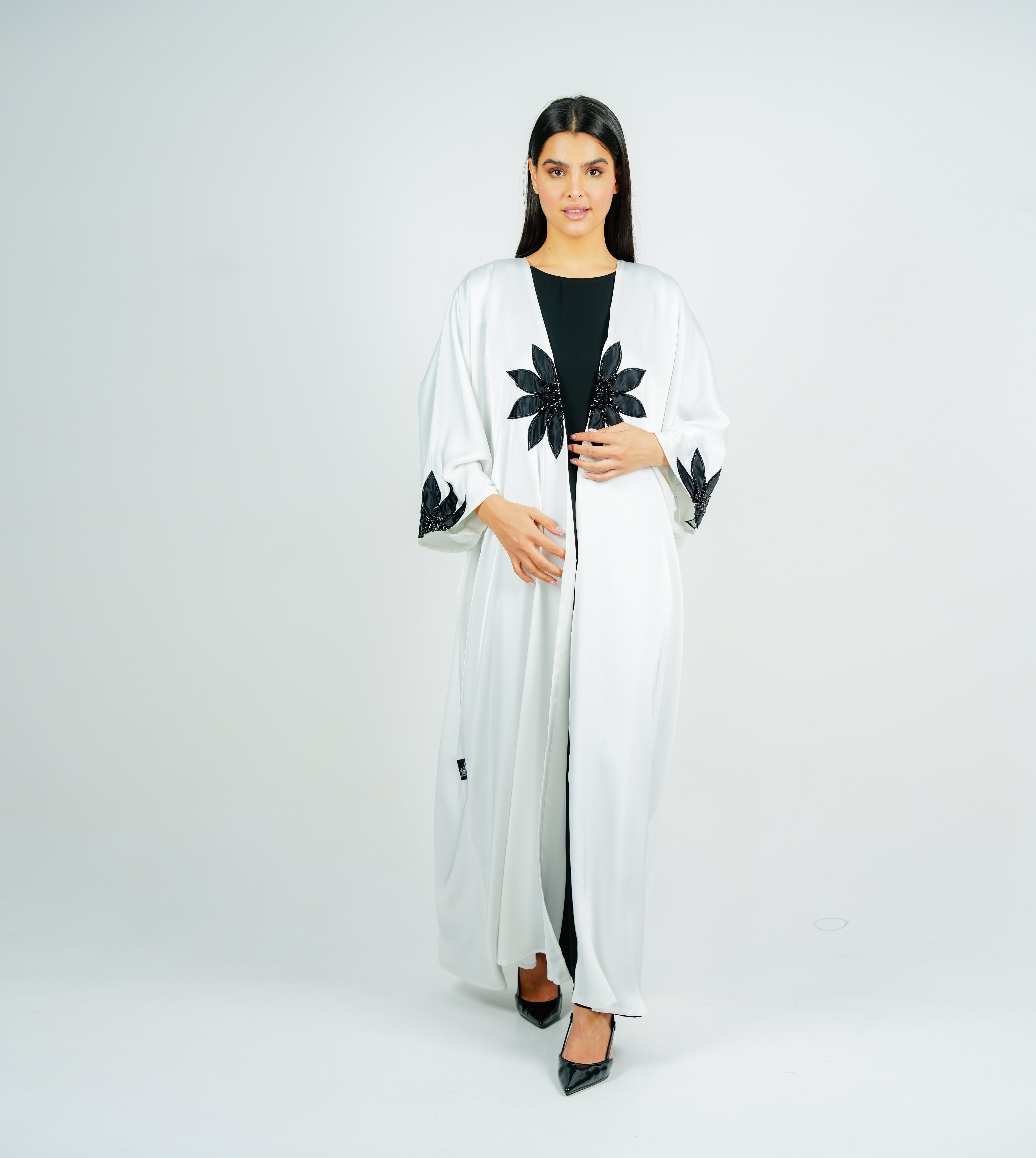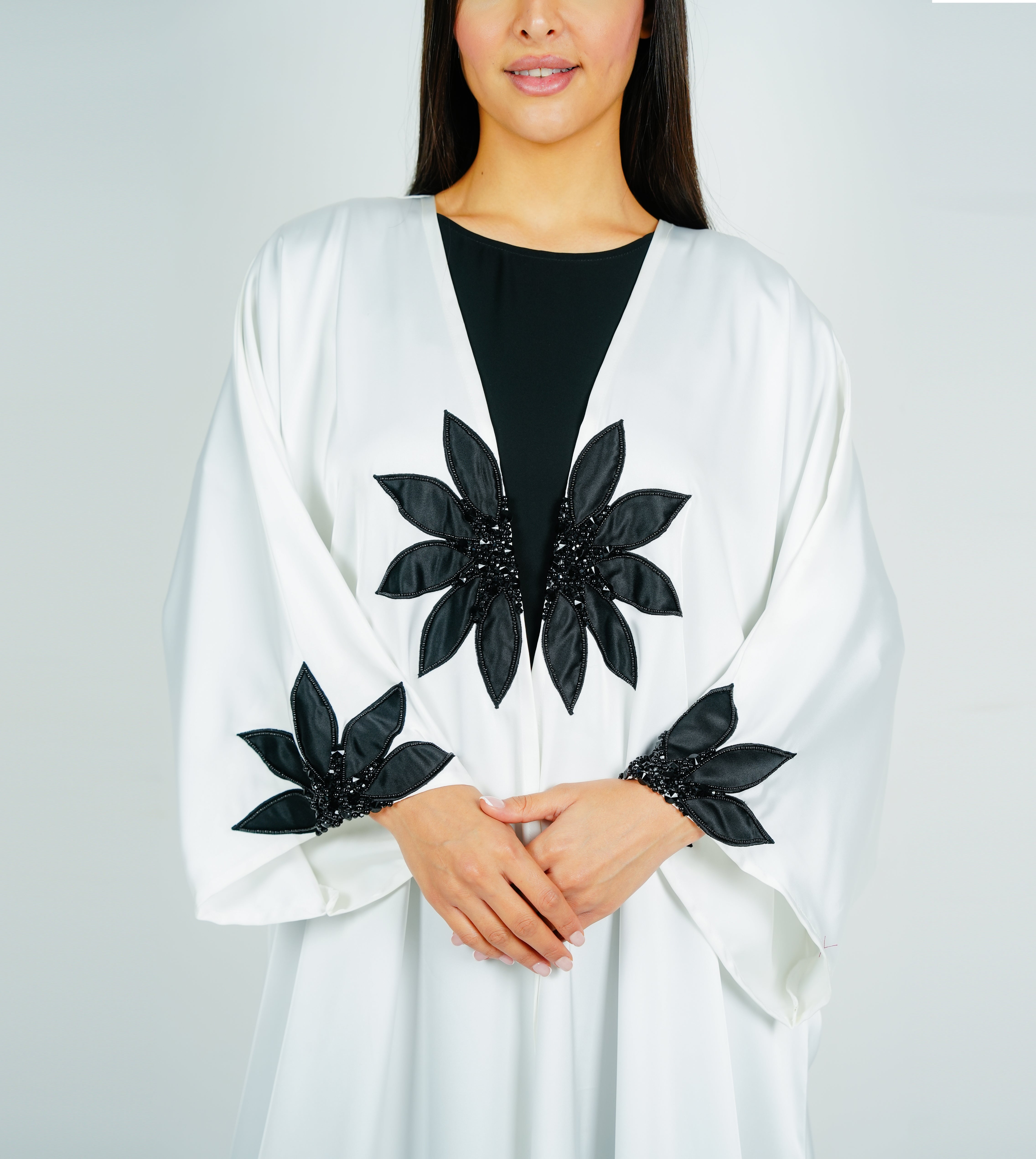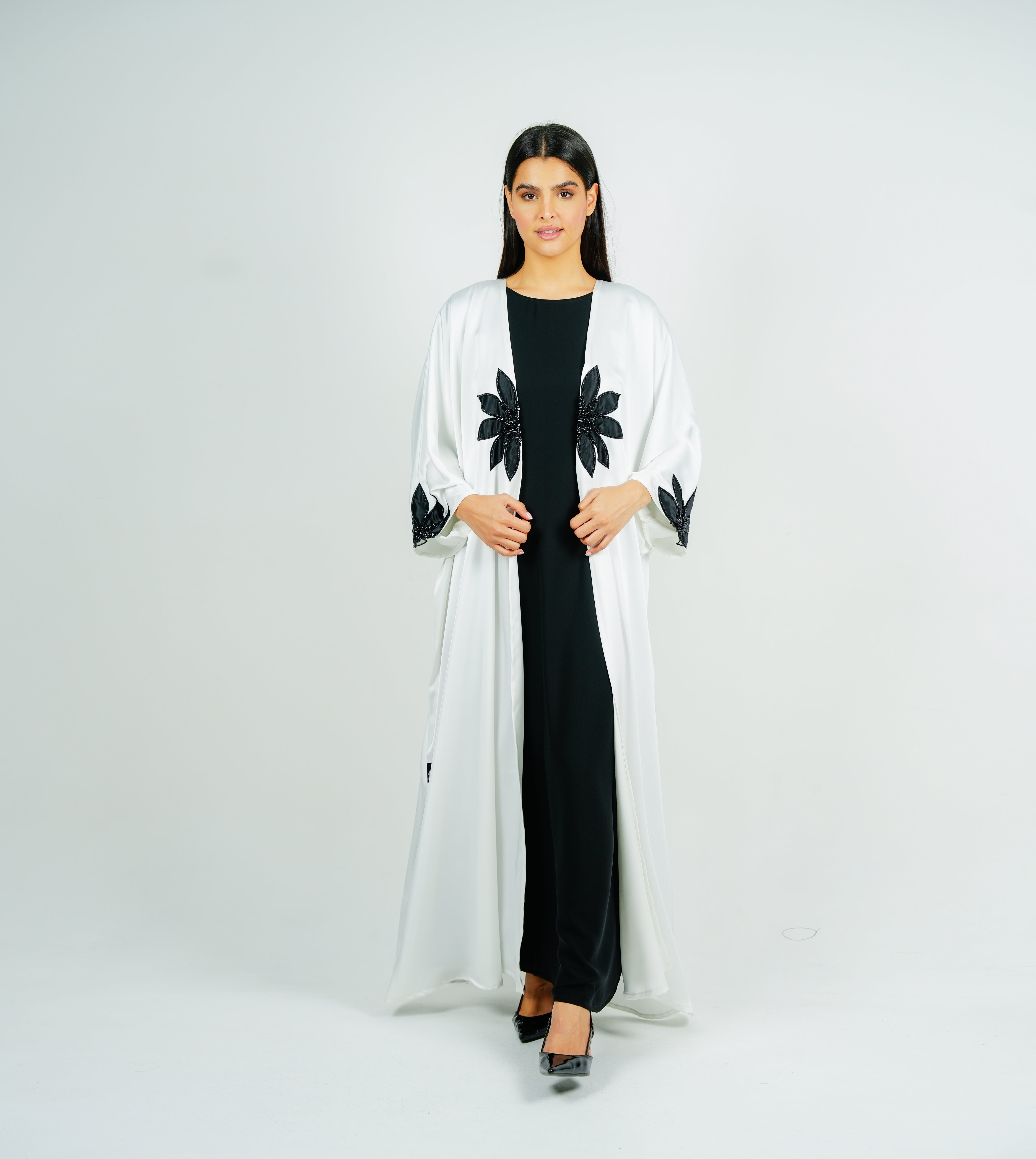 Elegant Bisht with Embroidery Flower And stones بشت أنيق مطرز بالزهور والأحجار