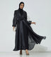 Abaya Set with Gold Stones Embroidery | white inner dress & Belt اكتشفي الأناقة مع طقم عباية يتميز بتطريز ذهبي مرصع بالأحجار، وفستان داخلي أبيض وحزام, مثالي للمناسبات الرسمية والخاصة
