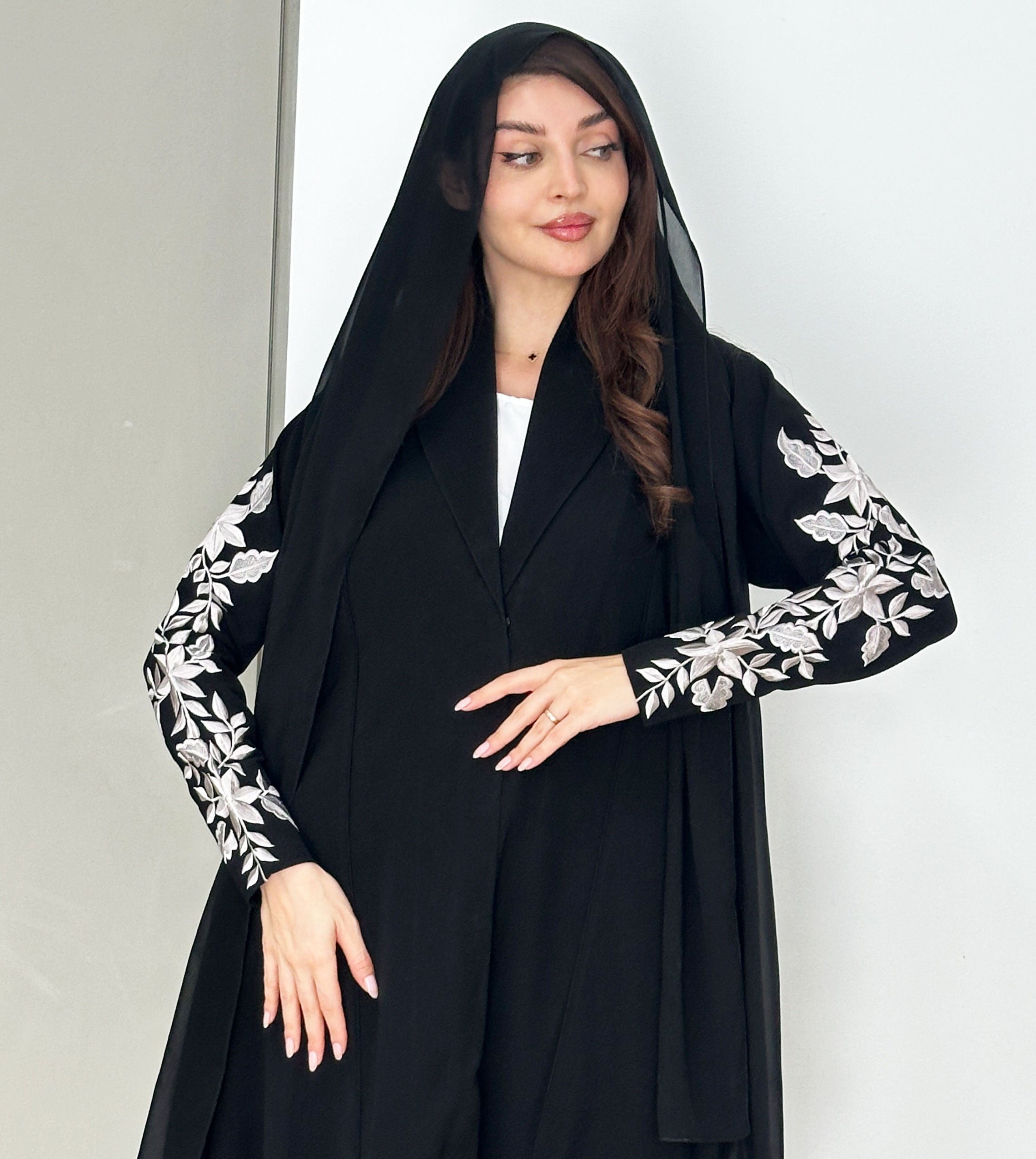 Stylish Blazer with Embroidery Design sleeves بليزر أنيق، قطعة مميزة تتميز هذا البليزر بتصميم انسيابي وأكمام مطرزة بأناقة، مما يضفي لمسة من الفخامة على التصميم الكلاسيكي