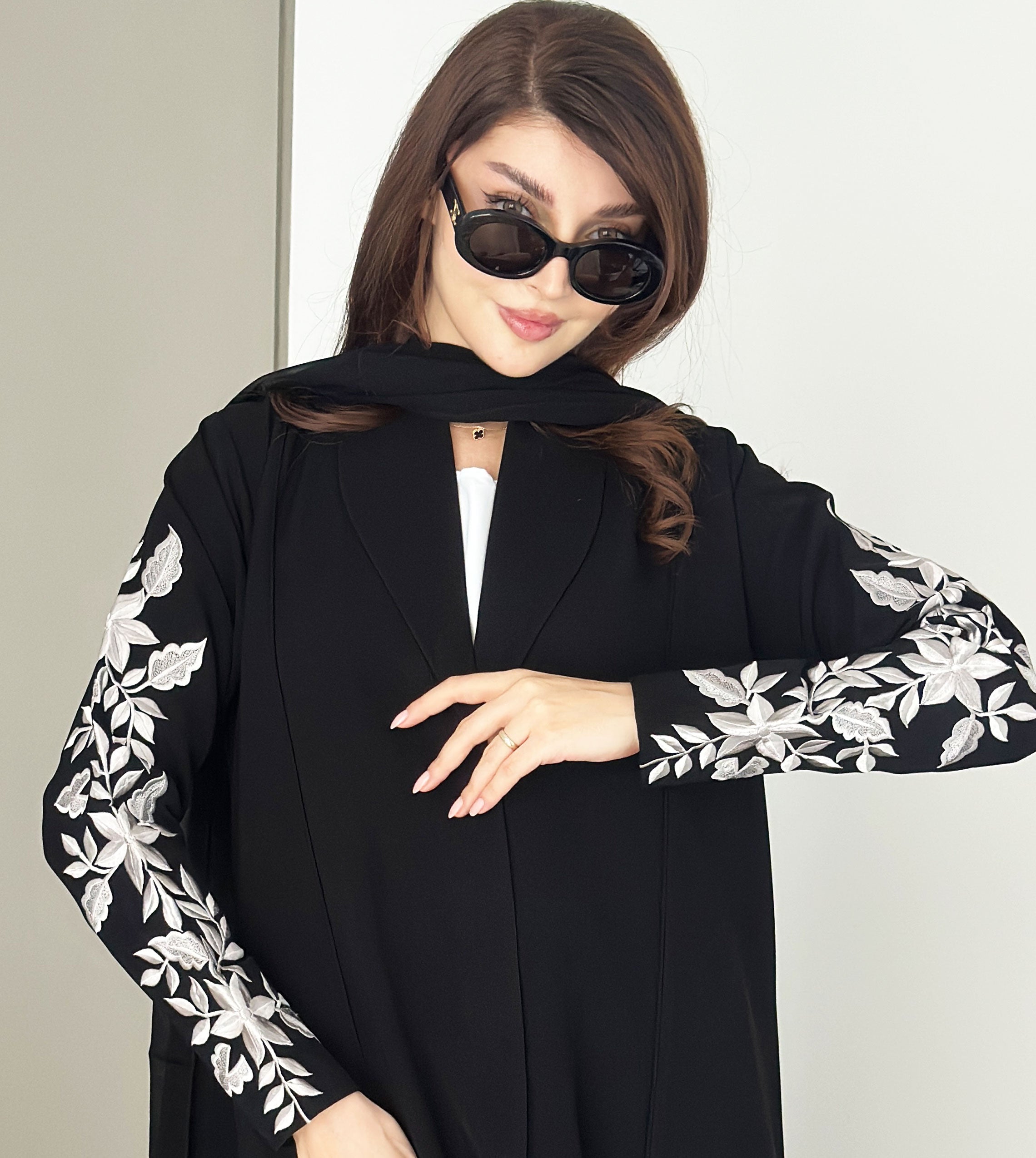 Blazer with White Embroidery Design بليزر مزخرفة بتطريز ابيض، تصميم جذاب يُبرز الأناقة بلمسة عصرية