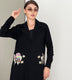 سترة رمادية أنيقة مزينة بتصميم دانتيل أنيق، وجيوب عملية، وأزرار أنيقة