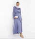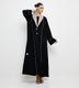 Organza Abaya with Silver Stones – French Cut Design + Belt عباية أنيقة من الأورجانزا مطرزة بأحجار فضية، وأكمام مرنة، وقصة فرنسية. تتضمن حزامًا - مثالية لعشاق الموضة العصرية